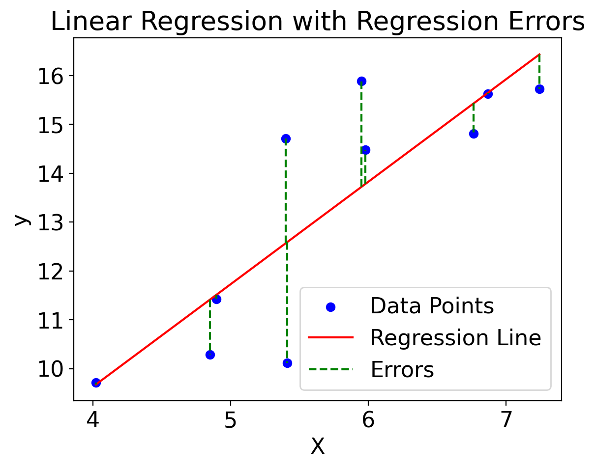 y = 2 * X.squeeze() + 1 + np.random.normal(0, 2, 10) # Dependent variable