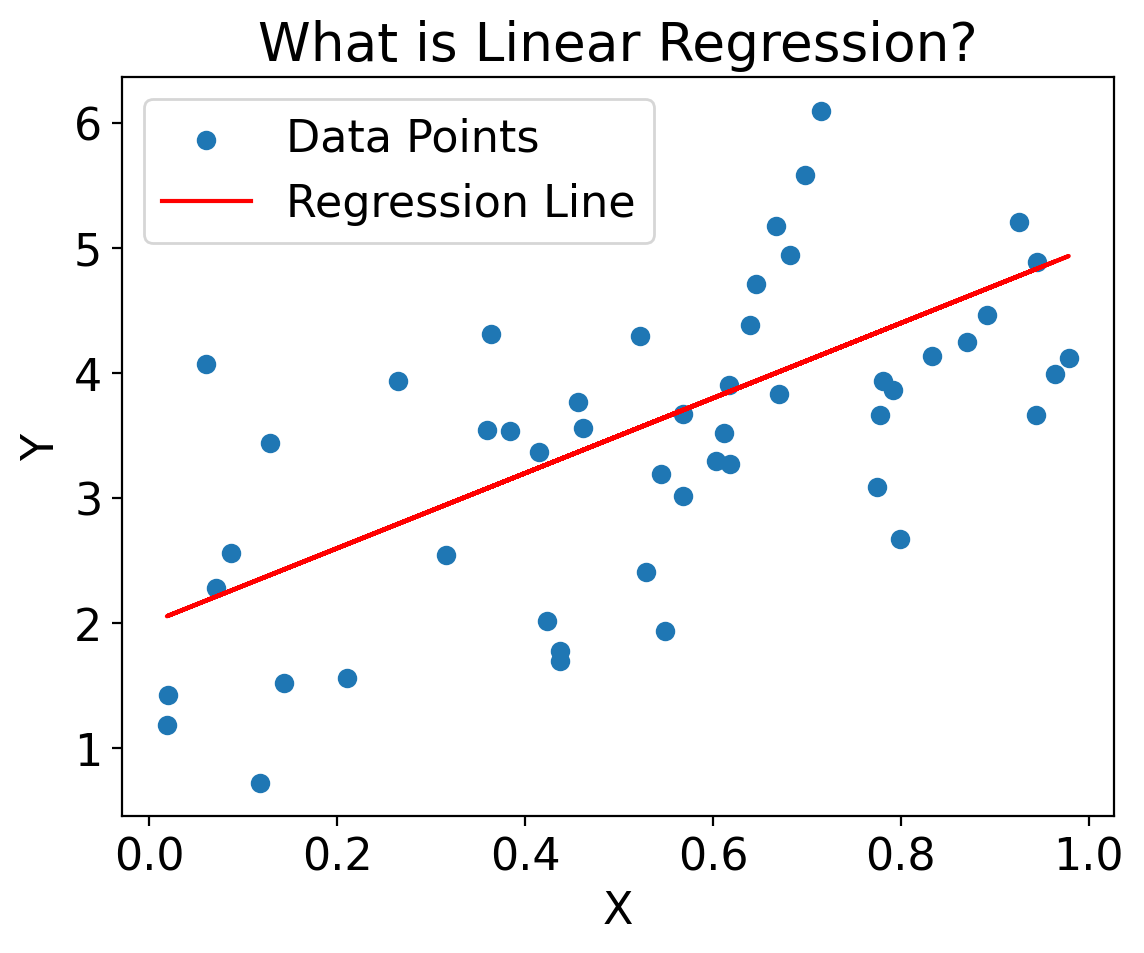 p.line('x', 'y', source=line_source, color='red', legend_label='Regression Line')